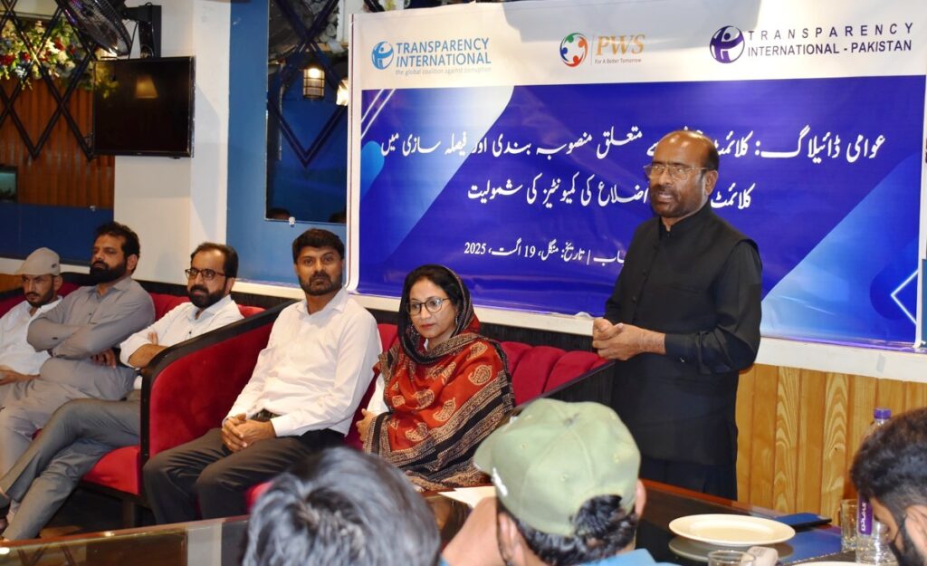 JHANG: To improve climate governance in climate-affected districts and to enhance community participation in environmental planning and decision-making a community dialogue was held on Tuesday. The event was organized by Transparency International Pakistan in collaboration with the Programme for Well-being and Sustainability (PWS).