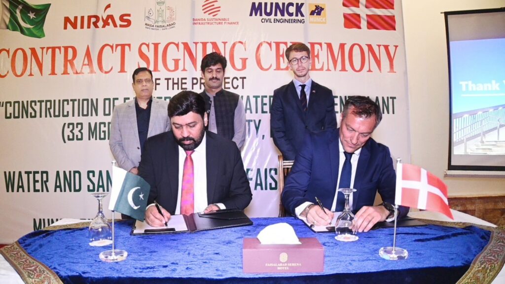 FAISALABAD: In a major step towards tackling water pollution and climate-related challenges, the Water and Sanitation Agency (WASA) Faisalabad has signed a construction agreement with Danish contractor company Munk for the establishment of a 33 million gallons per day (MGD) Wastewater Treatment Plant. The agreement was signed by Project Director Kamran Raza and Munk’s Project Director Mr. Rasmus Schmidt Peterson.